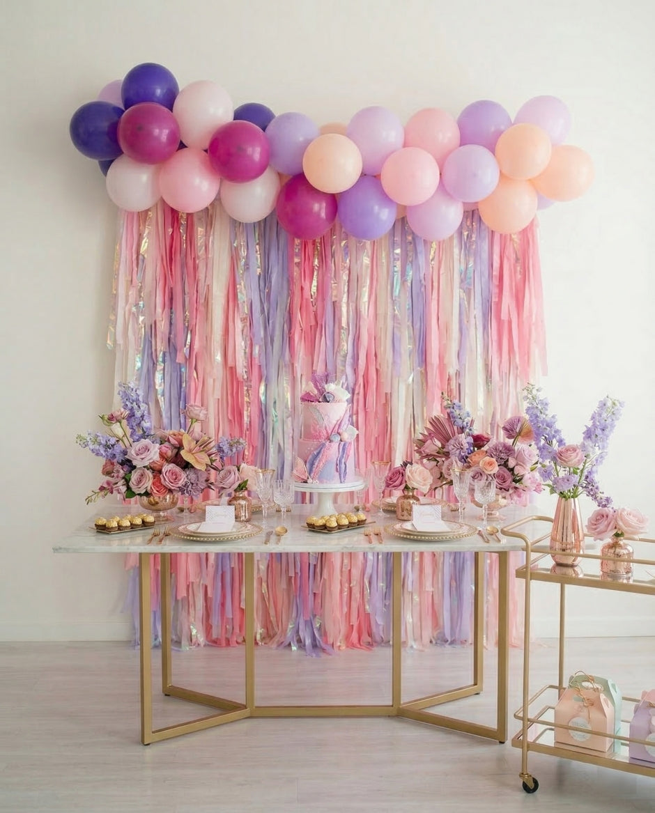 Our Rectangle Fringe Backdrops are crafted from premium plastic and metallic fringe materials that are lightweight, reusable, and durable. The layered fringe adds depth, movement, and texture to any celebration setup.